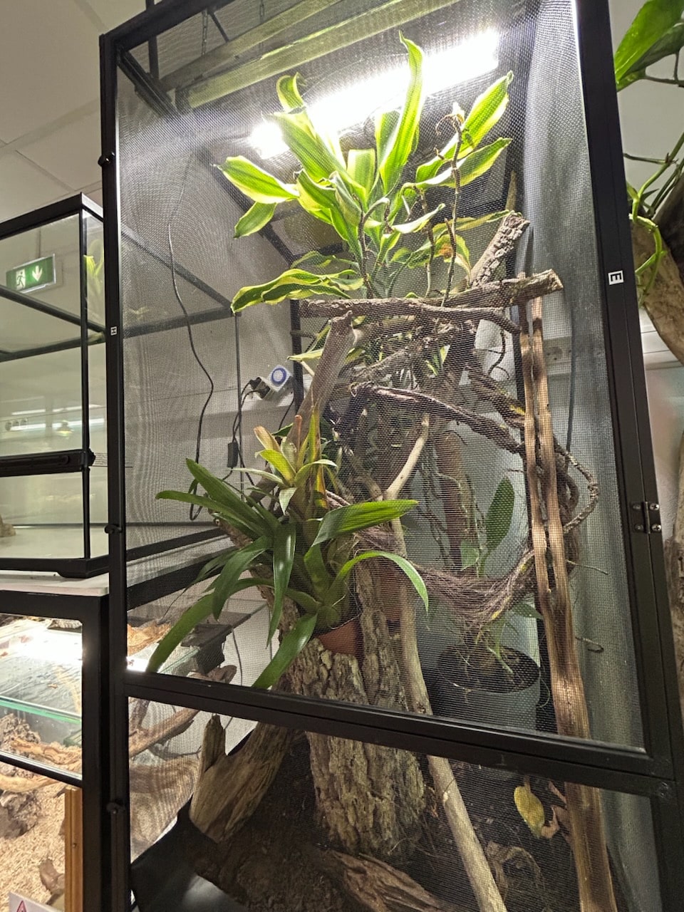 Terrarium 01 Ce terrarium accueille notre scinque à langue bleue, Noopi. Découvrir Terrarium 02 Ce terrarium va bientôt accueillir un jeune mâle pogona. Découvrir Terrarium 03 Ce flexarium (terrarium grillagé) accueille notre mâle caméléon casqué du Yémen, Maryan. Découvrir Terrarium 04 Ce terrarium abrite diverses espèces de plantes dont quatre variétés carnivores. Découvrir Terrarium 05 Ce terrarium accueille notre femelle serpent des blés, Dédette. Découvrir Terrarium 06 Ce terrarium accueille notre mâle serpent des blés, Raphaël. Découvrir Terrarium 07 Ce terrarium accueille nos deux femelles geckos léopard. Découvrir Terrarium 08 Ce terrarium accueille nos trois femelles pogonas. Découvrir Terrarium 09 Ce terrarium accueille nos trois femelles adultes geckos à crête: Lily, Sunny et Mélisandre. Découvrir Terrarium 10 Ce flexarium accueille notre femelle caméléon casqué du Yémen: Jo-Sandrine Pascale. Découvrir